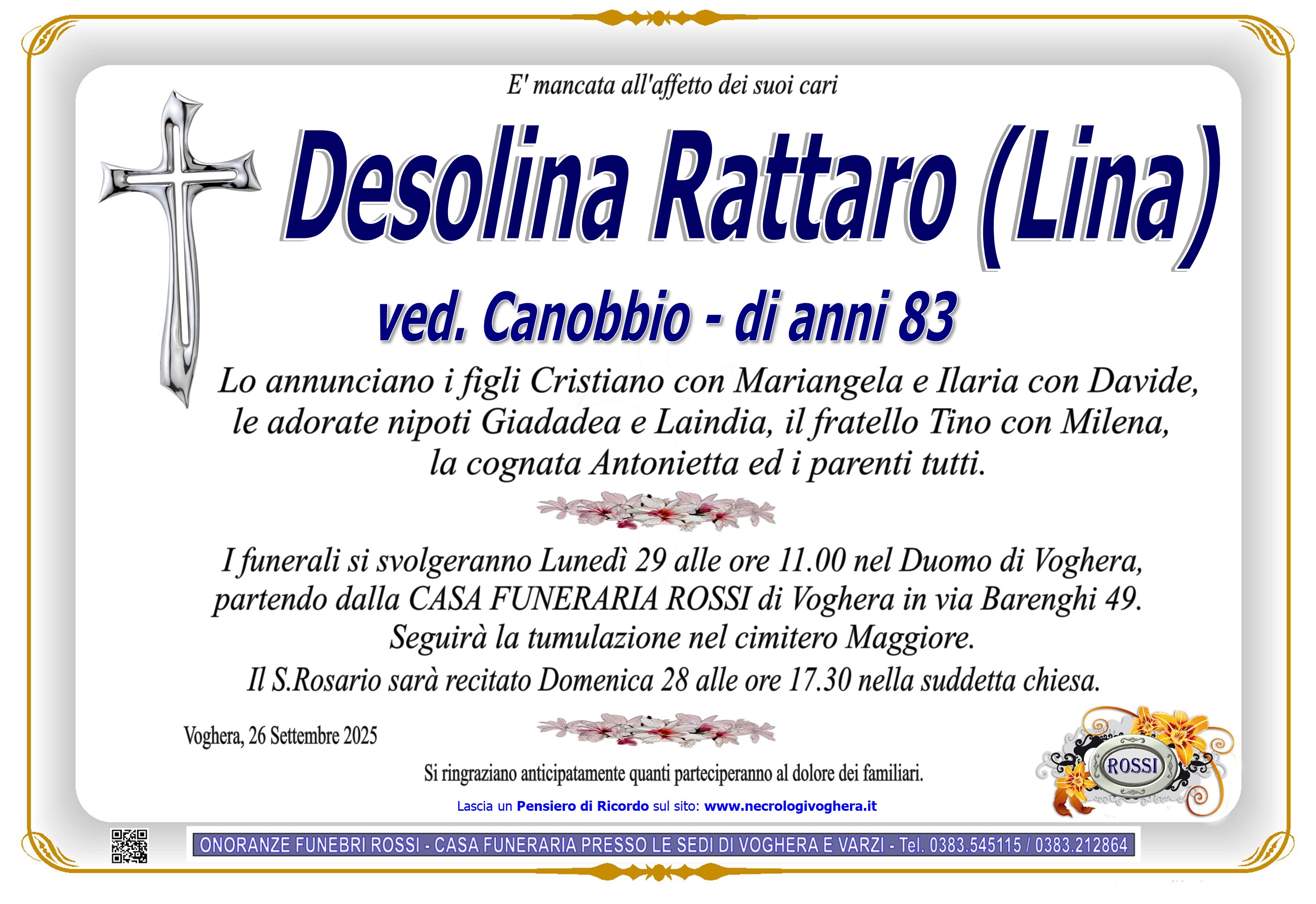 NECROLOGIO Desolina Rattaro
